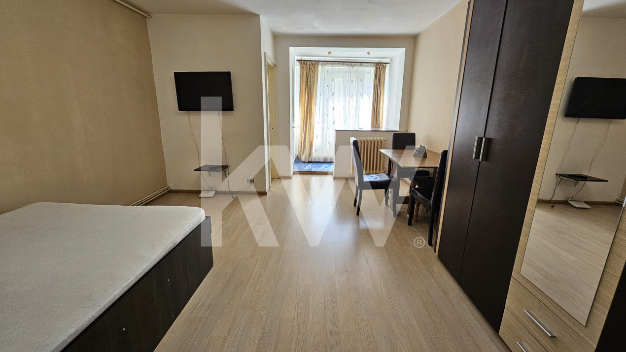 Garsoniera este curata, mobilata si utilata complet, forte luminoasa pe tot parcursul zilei, avand pozitionare sudica, este izolata exterior, dispune de suprafata utila de 32 mp si este compartimentata in: hol la intrare, baie, camera, bucatarie si logie. Garsoniera dispune de geamuri termopan, parchet laminat, iar incalzirea se face cu centrala proprie pe gaz.