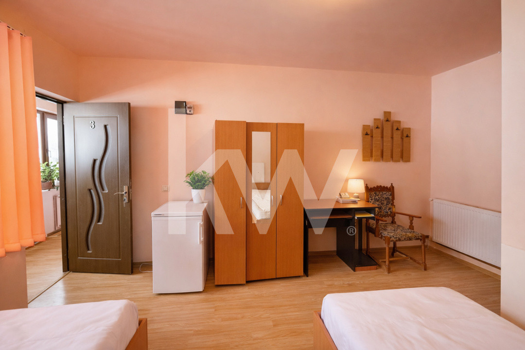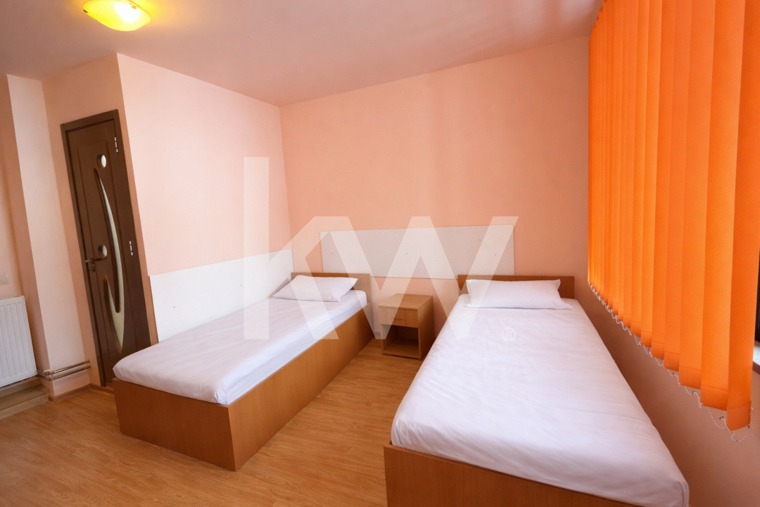 Se oferă spre închiriere cameră cu baie proprie având o suprafață utilă de 25 mp situată într o casă tip pensiune formată din patru camere. Camera este luminoasă,bine întreținută și mobilată cu două paturi individuale fiind potrivită pentru una sau două persoane.
