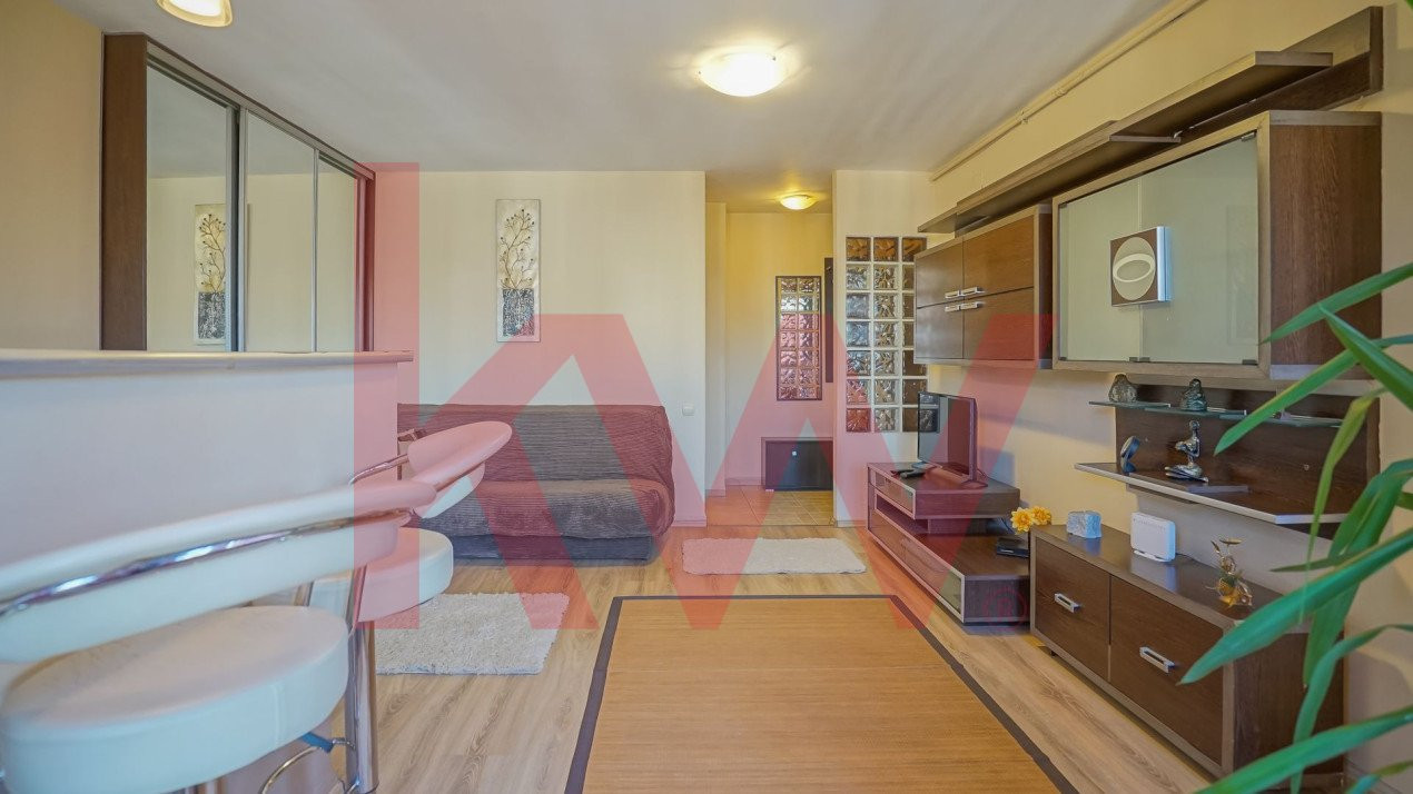 Garsoniera este complet mobilata si utilata, inclusiv bucataria deschisa, baia cu cabina de dus si un balcon. Astfel, veti gasi tot ce aveti nevoie pentru a va simti acasa imediat ce va mutati.