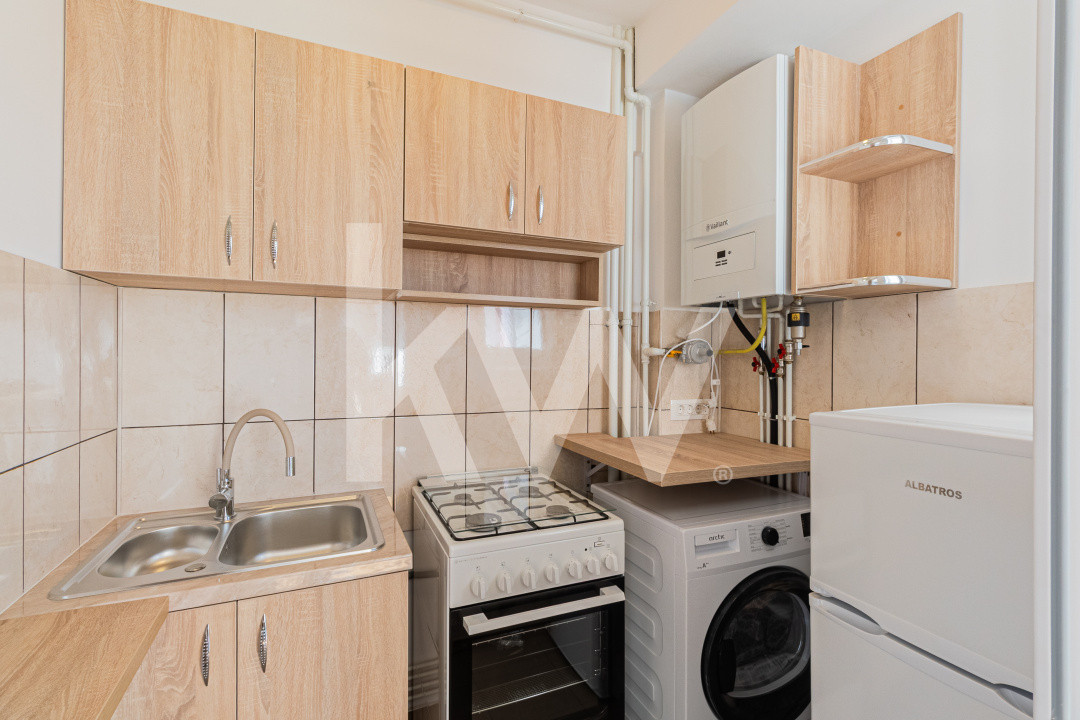 Garsoniera are o suprafață utilă de 30 mp, la care se adaugă un balcon de 4 mp. Este amplasată la etajul 8 al unui imobil cu 11 etaje și beneficiază de orientare sud-vestică, asigurând lumină naturală abundentă pe tot parcursul zilei și un consum redus de energie. Proprietatea este mobilată și utilată complet, exact ca în fotografii, renovată integral și se află la prima închiriere. Compartimentarea este semidecomandată, incluzând hol, living, bucătărie și baie. Proprietatea beneficiază de centrală proprie, asigurând confort termic pe tot parcursul anului.