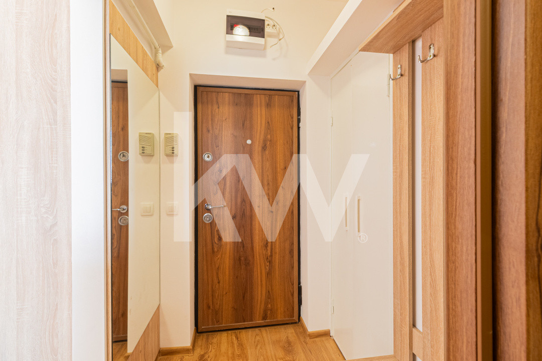 Garsoniera este pretabilă pentru un cuplu sau o persoană, oferind confort și funcționalitate într-un spațiu modern.