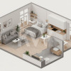 Interiorul este gândit în stil open space, creând un flux natural între zona de living, bucătărie și locul de relaxare. Un dormitor luminos și o baie modernă completează acest spațiu, asigurându-vă confortul dorit. Fiecare detaliu al acestei garsoniere a fost ales cu grijă, pentru a vă oferi un ambient cald și primitor, perfect pentru a vă transforma casa într-un cămin. Zona Noua vă va fermeca cu accesul facil la toate facilitățile necesare, de la magazine și restaurante, până la transport în comun.