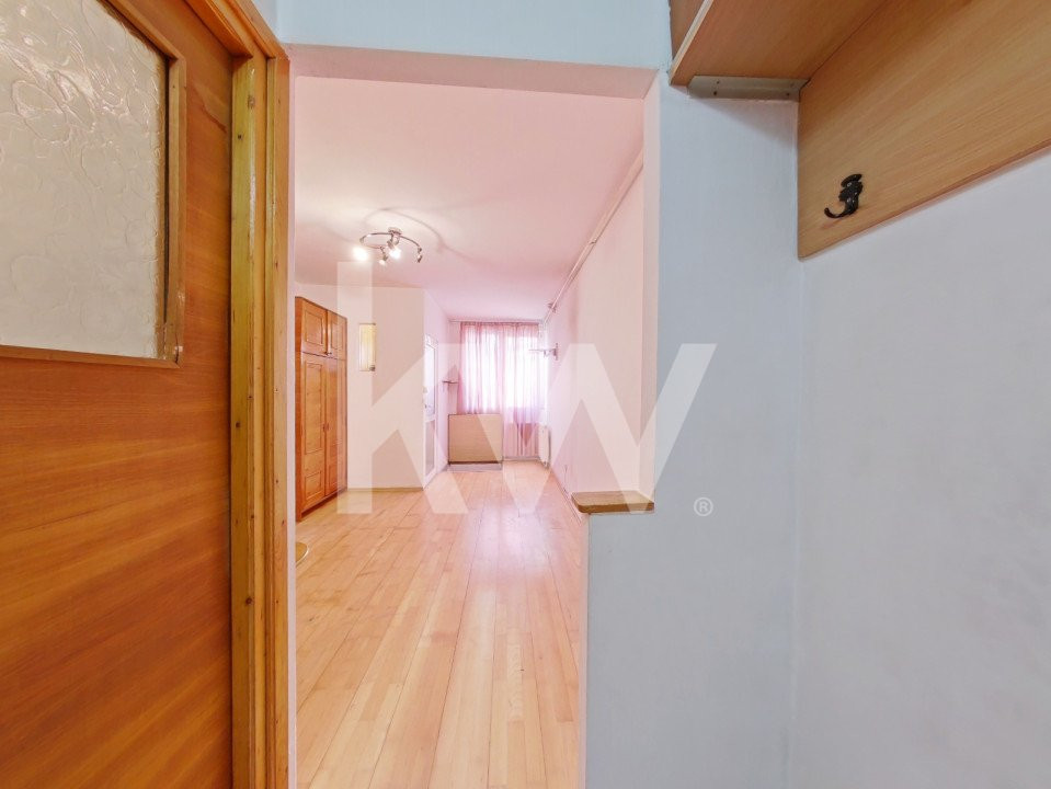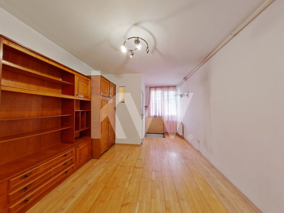 Această garsonieră semidecomandată, situată la parterul unui bloc cu 4 etaje, construit în anul 1975, are o suprafață totală utilă de 38 mp, fiind distribuită pe două nivele: 19 mp la parter, unde se află o cameră, bucătărie și baie, și 19 mp la demisol, conectat printr-o scară interioară, care reprezintă un spațiu suplimentar (neintabulat în CF). Garsoniera este parțial mobilată și utilată, oferind astfel o bază practică pentru viitorii proprietari. În plus, dispune de centrală proprie pentru a asigura confortul termic în orice sezon.