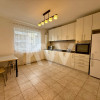 Bucătăria este închisă, generoasă și complet mobilată și utilată, dotată cu frigider, cuptor electric, aragaz, hotă, cuptor cu microunde și mașină de spălat rufe. Dormitorul este luminos și confortabil, cu pat matrimonial și multiple spații de depozitare, oferind suficient loc pentru organizare și confort zilnic.