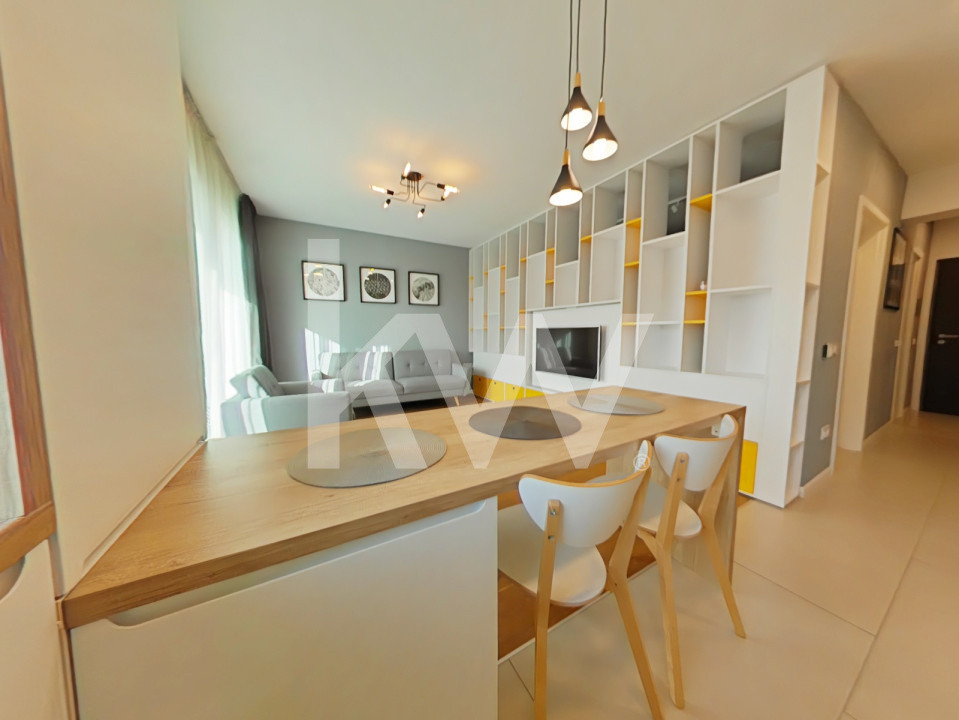 Acest studio, decomandat, vă aduce oportunitatea de a vă găsi căminul perfect. Cu un dormitor spațios, living + bucătărie open space, o baie și o suprafață de 42 mp, la care se adaugă un balcon de 3,5 mp, se încadrează ideal pentru a răspunde nevoilor dvs. Este amplasat la etajul 5 dintr-un total de 10 etaje și se bucură de o vedere încântătoare, oferind lumină naturală și un cadru relaxant. Proprietatea este mobilată și utilată, pentru confortul și bunăstarea viitorilor săi locatari. De asemenea, beneficiază de centrală proprie, asigurând confort termic pe tot parcursul anului.