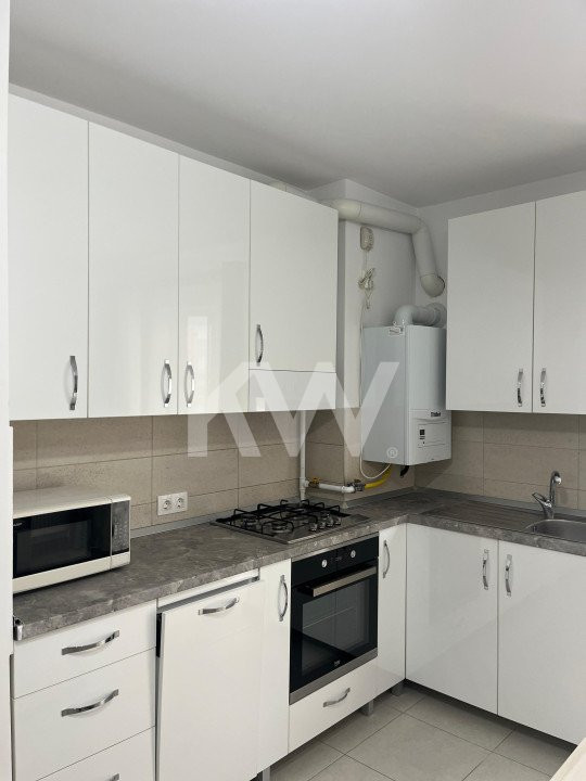 Apartamentul se inchiriaza mobilat si utilat : zona de bucatarie este dotata cu masina de spalat vase, aragaz si cuptor, in zona de living aveam canapea extensibila.