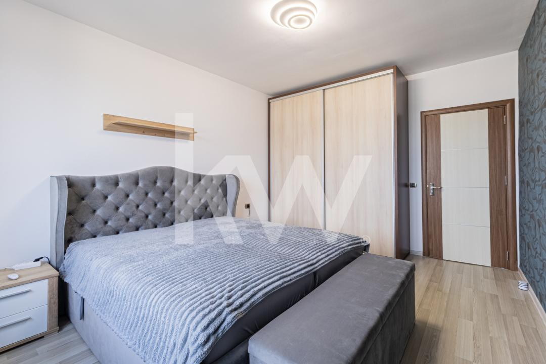 Dormitorul matrimonial este complet mobilat și include un pat premium Ami White, realizat la comandă, cu o valoare de aproximativ 6.300 €. Patul este prevăzut cu saltele individuale și telecomenzi separate, oferind confort personalizat pentru fiecare utilizator, susținere ergonomică optimă și un nivel ridicat de confort al somnului, completate de un design elegant și durabil. Apartamentul este disponibil pentru achiziție, fiind liber la vânzare, și reprezintă o alegere ideală atât pentru un cămin stabil și primitor, cât și pentru investiție. Proprietatea dispune de centrală proprie, asigurând confort termic pe tot parcursul anului.