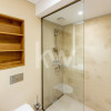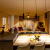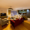 Detalii de design rafinate: lumină reglabilă, bandă LED în zona de bucătărie, finisaje din piatră naturală și marmură în băi;