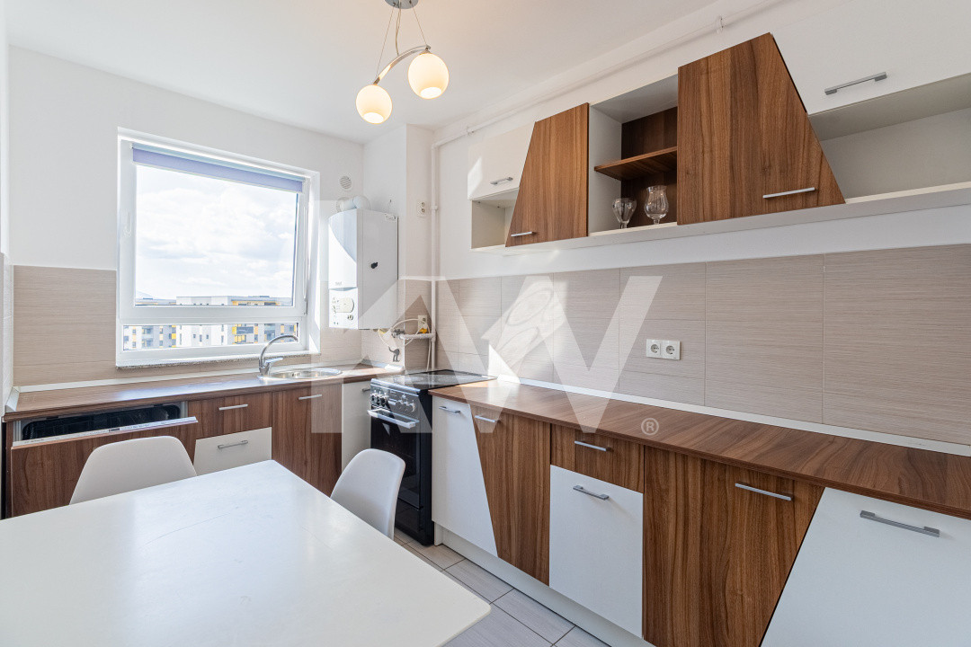 Este un apartament foarte luminos, cu bucatarie open space cu living-ul, mobilata si utilata complet. De asemenea dormitorul mare este mobilat, iar dormitorul mic/biroul poate fi amenajat dupa bunul plac.