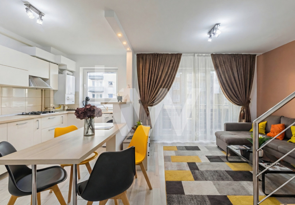 Suprafața utilă de 65 m² este eficient compartimentată, iar scara interioară conferă întregului apartament un aer modern și dinamic. Prețul include boxa de la subsolul blocului si locul de parcare. Imobilul face parte dintr-un bloc construit în 2016, cu standarde moderne și vecinătate bine selectată.