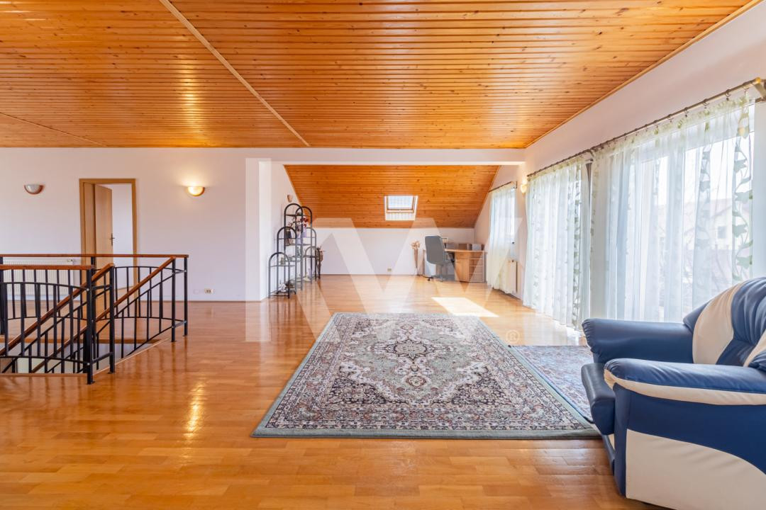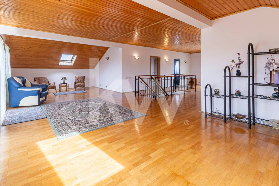 Imobilul, edificat în anul 2000, se desfășoară pe patru niveluri – demisol, parter, etaj și mansardă (D+P+E+M) și dispune de o suprafață totală utilă de 544 mp, fiind amplasat pe un teren de 700 mp. Construită cu grijă pentru detalii și o compartimentare inteligentă, casa este mobilată și dotată, compusă din: 3 camere de zi - sufragerii, 8 dormitoare, 2 bucătării, 5 băi, 3 dresinguri și spații anexe care răspund cu ușurință nevoilor unei familii moderne, precum și 5 balcoane / terase.