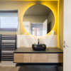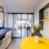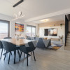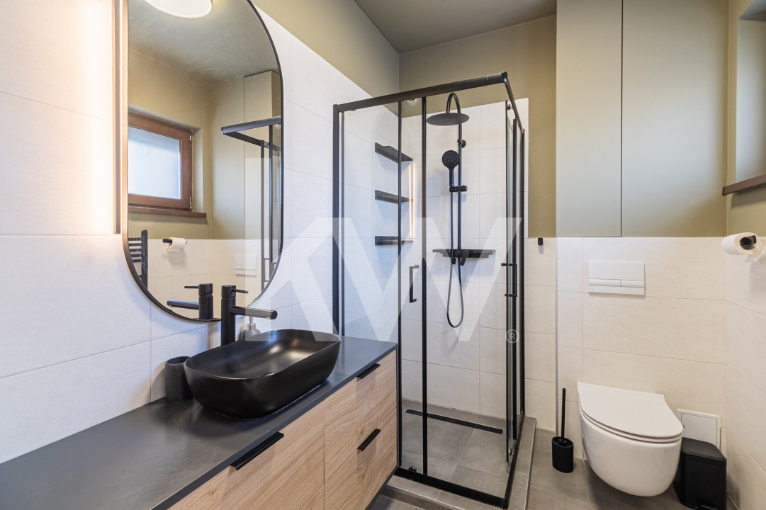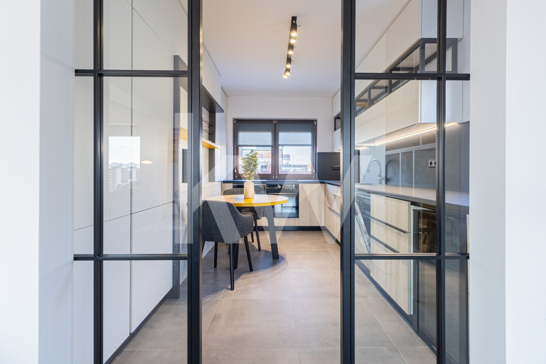 Bucătăria este complet utilată, fiind gata să susțină orice aventură culinară. Un detaliu ce face diferența? Frigiderul special pentru vinuri, elementul central pentru serile de relaxare sau pentru momentele în care ai oaspeți.