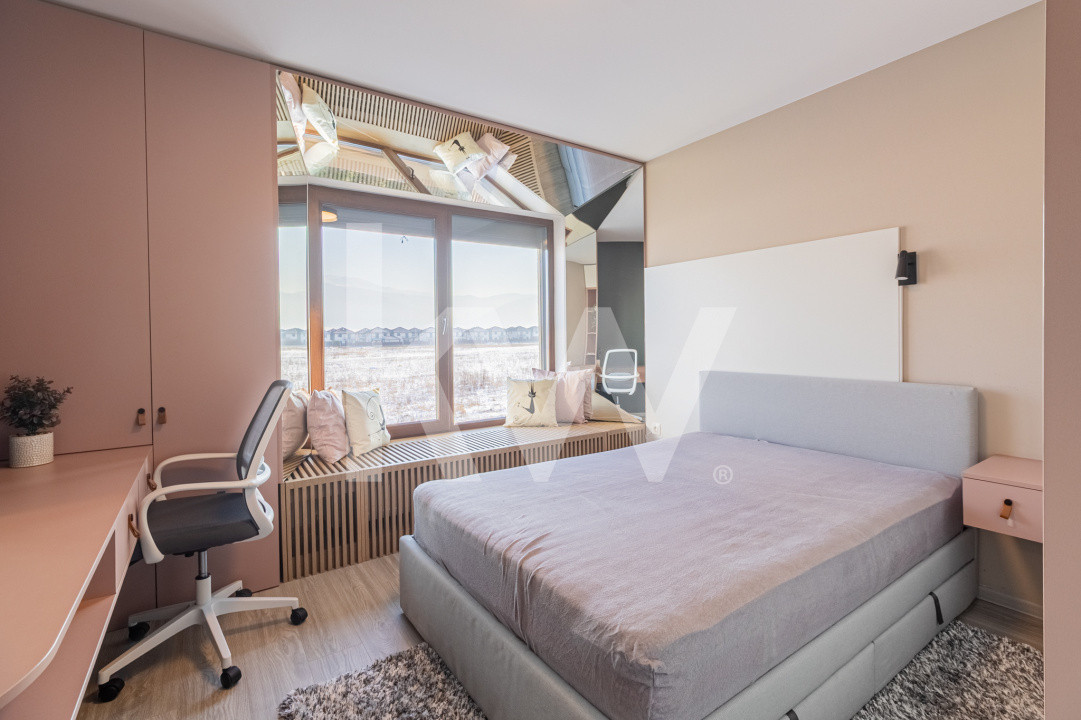 Toată casa este mobilată cu piese realizate exclusiv pe comandă, utilizând materiale premium și finisaje de bun gust.