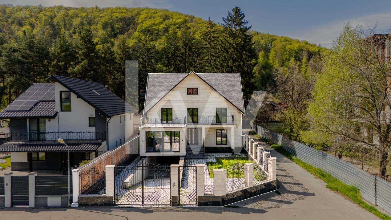 Vă prezint o casă cu totul specială, situată în cartierul Bunloc, din Săcele, într-o zonă rezidențială liniștită, cu acces restricționat doar pentru riverani, ideală pentru cei care își doresc intimitate, confort și un cadru natural deosebit. Zona Bunloc este apreciată pentru aerul curat, priveliștile către munte și accesul rapid către Brașov, fiind una dintre cele mai căutate locații pentru locuire permanentă, datorită echilibrului între natură și proximitatea față de oraș.