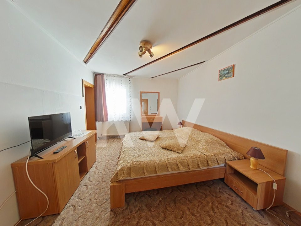 Pensiunea dispune de 4 camere spațioase: două camere duble cu băi proprii și două camere triple, fiecare având și băi private. Cu o suprafață generoasă de 180 mp utili și facilități bine întreținute, această proprietate este perfectă pentru familiile sau grupurile care doresc să petreacă timp în natură.
