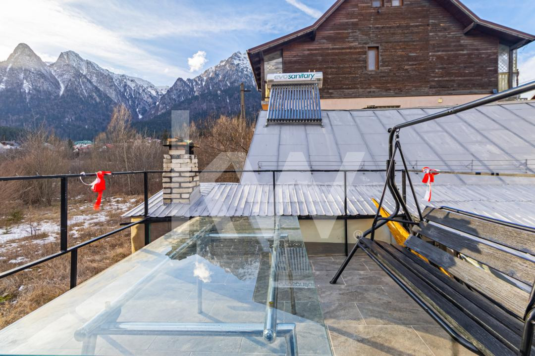 - Cel de-al treilea corp – spațiu multifuncțional de depozitare la parter + terasă deschisă deasupra, cu priveliște neobturată spectaculoasă către Masivul Bucegi – loc perfect pentru dimineți cu cafea și seri memorabile.