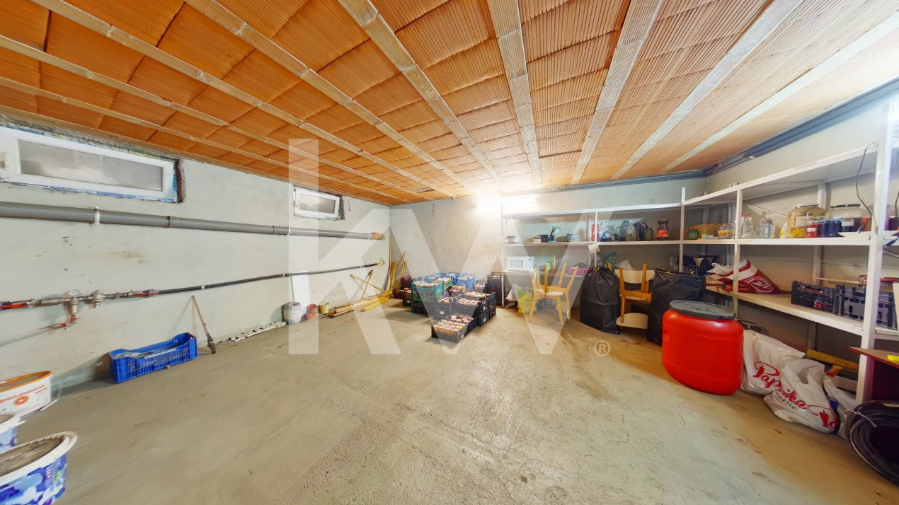 La subsol, veți găsi o pivniță, o cameră tehnică și un hol, cu o suprafață utilă de 55 mp.
