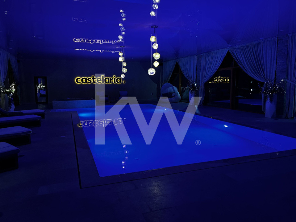• Piscină placată cu marmură, pereți cu tencuială venețiană, lumini ascunse LED, sistem performant de refulare