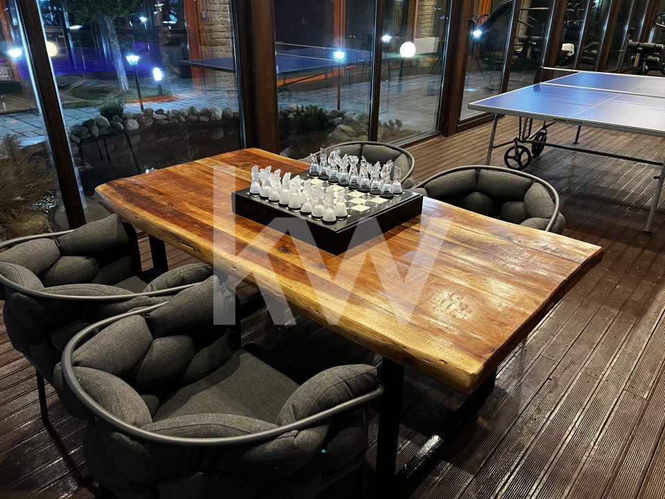 • Masă din stejar masiv de 15 ani, adusă din Georgia, realizată dintr-o singură bucată – parte dintr-un set de 3 piese
