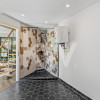 • Cameră de intrare în zona piscinei cu marmură, piatră naturală, lumini pe senzor