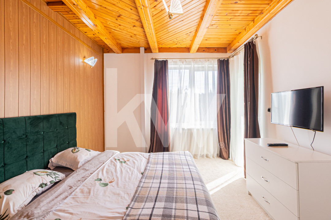 Proprietatea dispune și de garaj subteran cu acces direct, iar terenul generos permite amenajarea unor zone de relaxare, foișor, spa sau alte facilități apreciate de turiști.