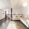 La etajul principal: hol de primire generos, baie modernă, bucătărie complet utilată (inclusiv mașină de spălat vase), o cameră destinată întâlnirilor sau relaxării și o zonă spațioasă de birou / open-space cu scară interioară elegantă către mansardă.